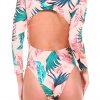 Traje de baño tipo enterizo con corte moderno y sexy. Su diseño con abertura frontal resalta la figura, mientras que las mangas largas aportan un toque elegante y diferente.